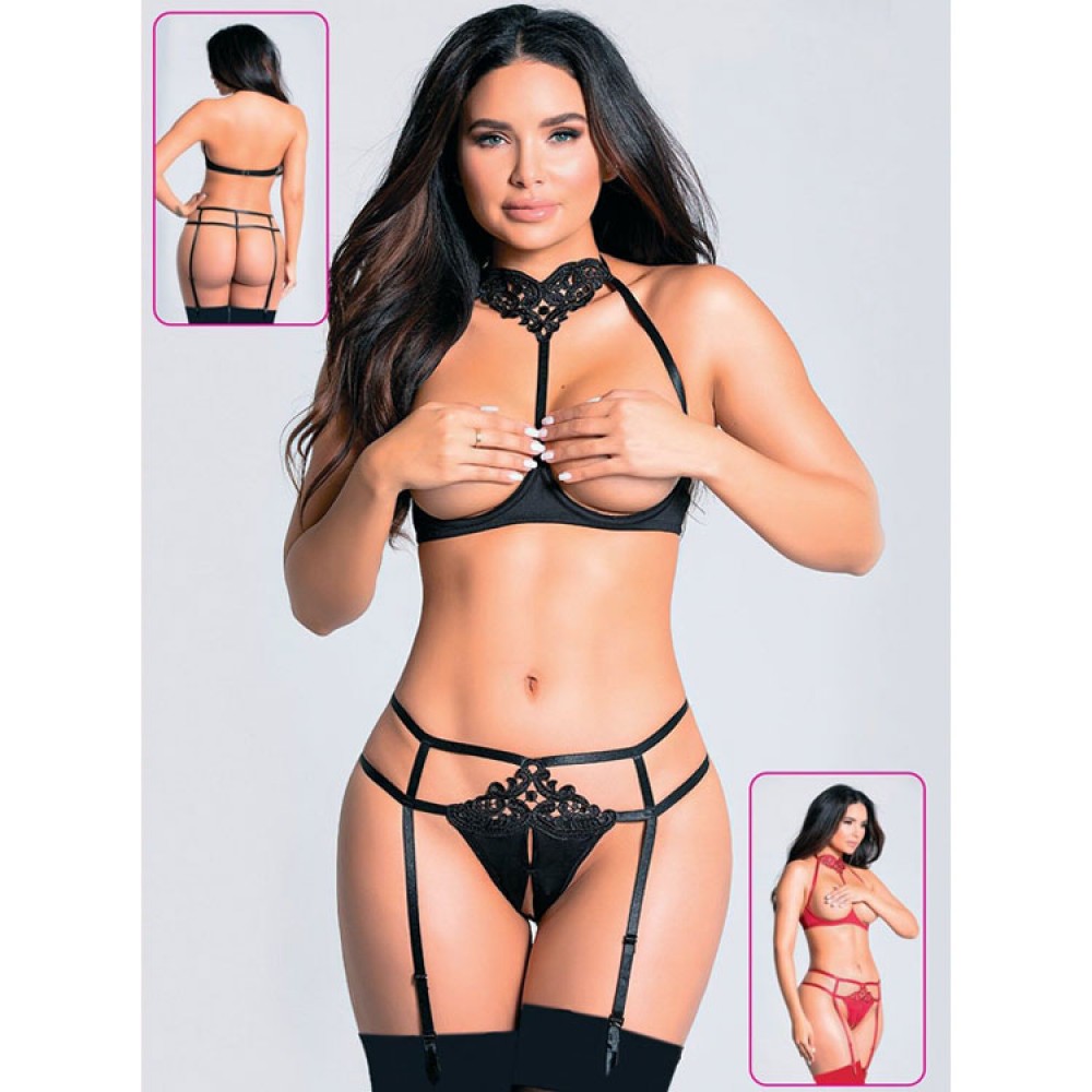 Güpür Detaylı Özel Bölge ve Göğsü Açık Jartiyer Takım