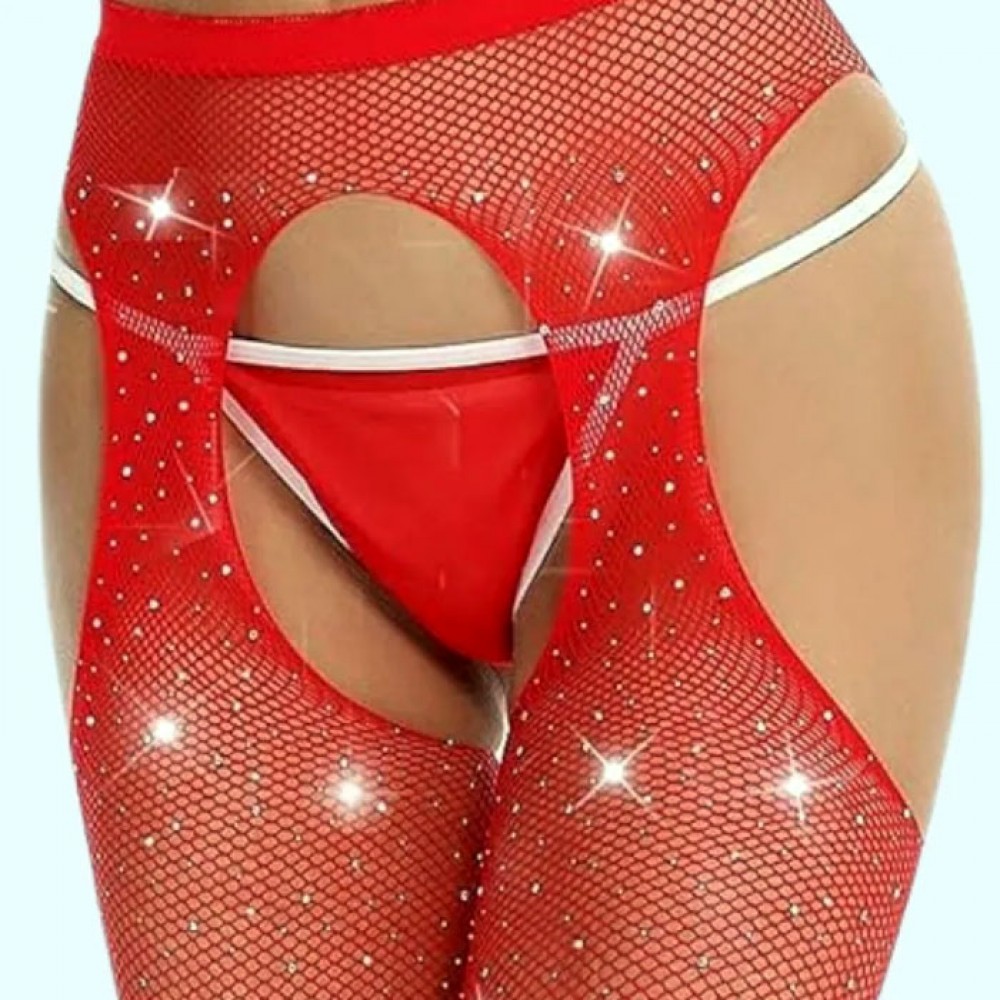 Özel Bölgeler Açık, Parlak Taşlı Külotlu Seksi Çorap.