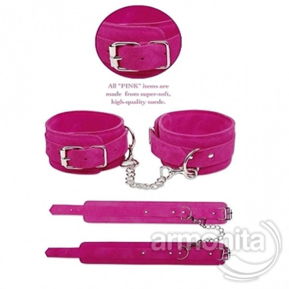 - Pipedreamdan pembe süetten şık el kelepçesi,