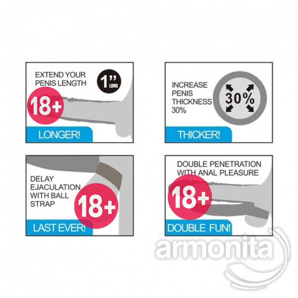 Cinsel ilişki sırasında penisi daha kalın ve uzun bir görünüm sunan, erkeklere özel tasarlanmıştır.